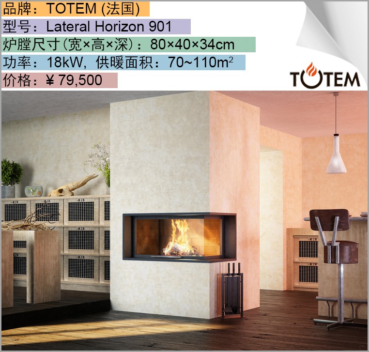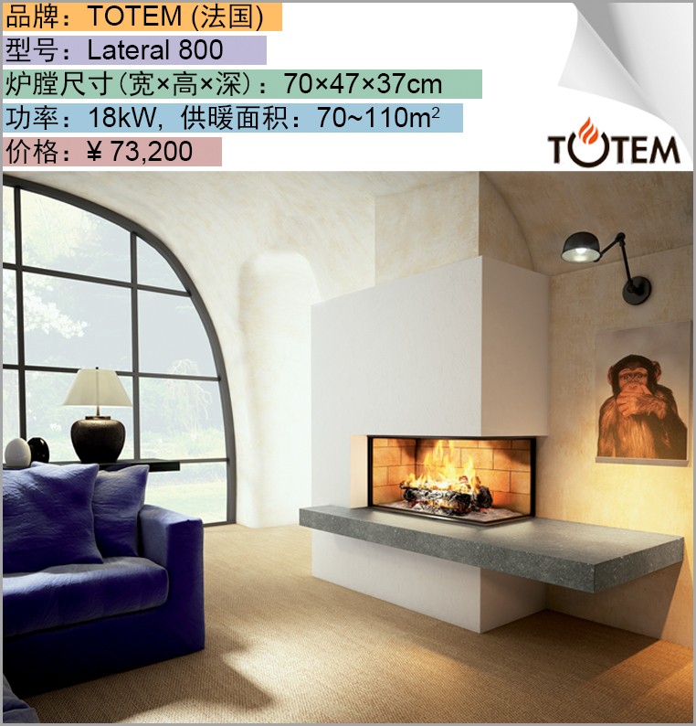 转角壁炉通过一块90°折弯的耐高温玻璃向彼此垂直的毗空间投放热量,最大观火角度可达270°,能将平淡无奇的墙壁转角转化为让人惊叹的目光焦点。