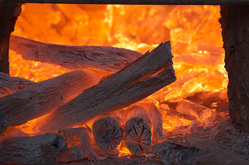 随着木柴的燃烧,各种挥发性气体燃烧殆尽,剩下的是纤维素和木质素分子中的碳链。碳(或木炭)会以较低功率燃烧很长时间。木炭的燃烧非常重要,这体现在两个方面。首先,木炭燃烧可以释放更多热量,这有助于提高整体燃烧效率。其次,木炭是以较低功率燃烧的,这意味着木炭可以燃烧很长时间,使炉火保持整夜不熄,第二天早上加入些木柴并打开风门就可以很容易重新点燃一炉旺火。
