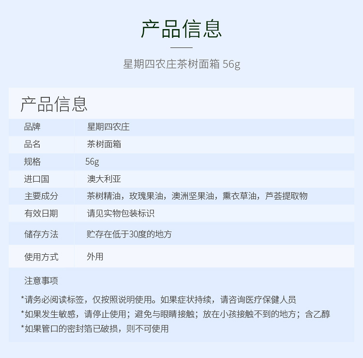 澳洲星期四农庄Thursday Plantation茶树面霜65g